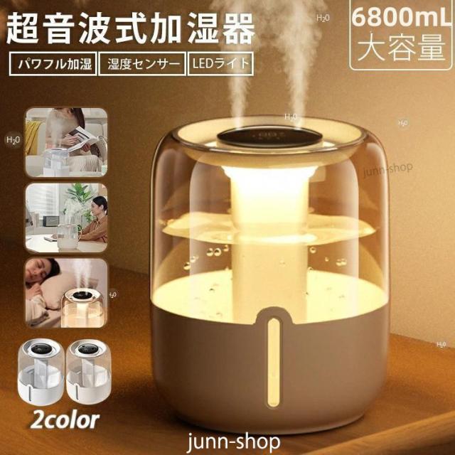加湿器 大容量 超音波式 卓上 デュアル噴霧口 6.8L スチーム式加湿器 自動停止機能 静音 加湿機 おしゃれ 省エネ 節電 エコ 湿度表示 長時間加湿 乾燥対策 室内