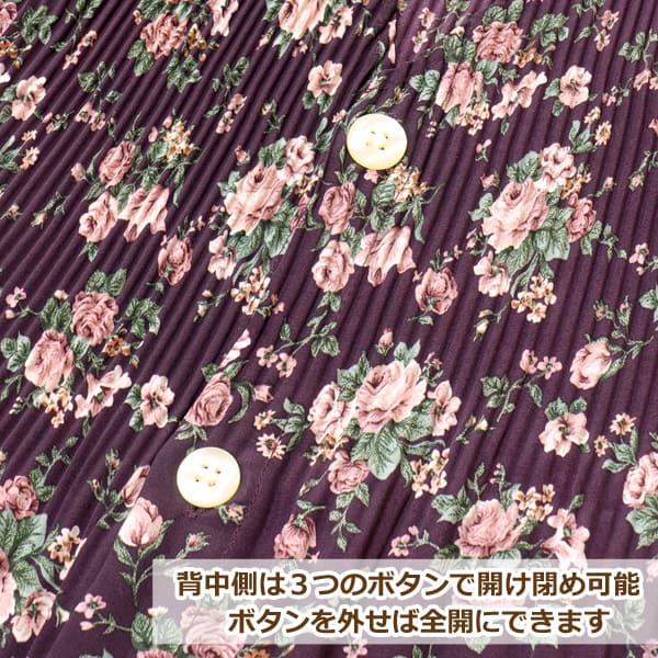 | 商品説明 | ※一面に広がるお花のプリントが女性らしいプリーツ加工が施されたロング丈エプロン♪ ※サラリとした軽い生地で動きやすく、少し艶のあるポリエステル素材なのでお洗濯後も乾きやすくシワになりにくい! ※前後の上部のみプリーツ加工が施されています。 ※ポケットは前左右に付いています。 ※背中側はV字型デザイン!ボタン(3つ)で開け閉め可能!ボタンを外せば全開にできます。 ※お料理やお掃除など普段使いはもちろん、ギフトやプレゼントにも最適◎! |