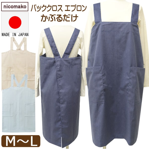 エプロン レディース 日本製 無地 バッククロス かぶるだけ M〜L k1221 nicomako ニコマコ ネコポス便は送料無料 婦人 女性 大人 ノースリーブエプロン クロスオーバーエプロン かぶりタイプ タブリエ 着脱簡単 シンプル 前掛け 料理 保育士