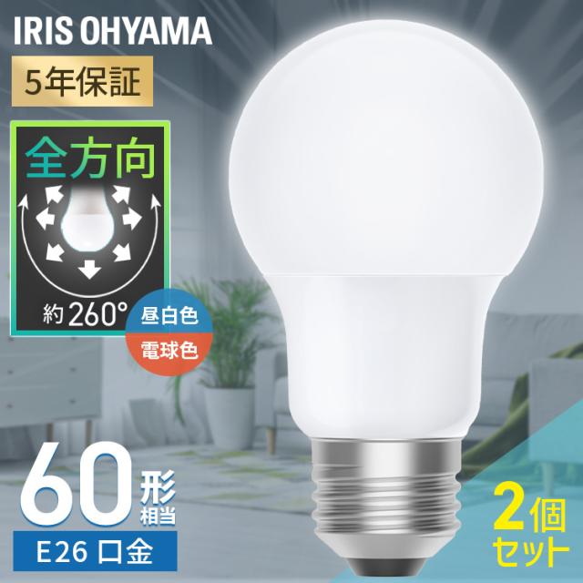 (検索用:2個 led電球 e26 60w 相当 昼白色 電球色 全方向タイプ 5年保証 LED 電球 E26 アイリスオーヤマ 4967576773461 4967576773478)
