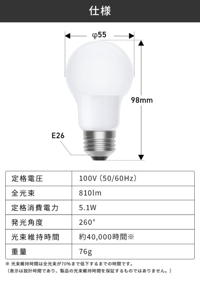 (表示は設計時間であり、製品の光束維持時間を保証するものではありません