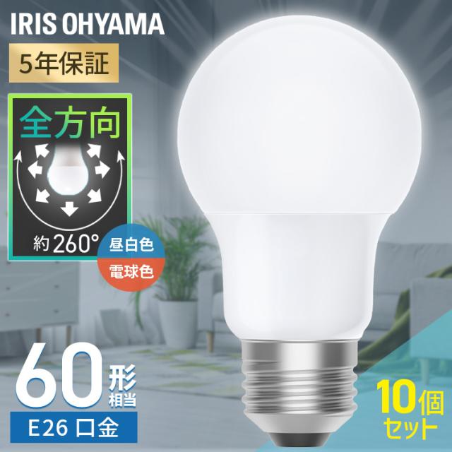 (検索用:10個 led電球 e26 60w 相当 昼白色 電球色 全方向タイプ 5年保証 LED 電球 E26 アイリスオーヤマ 4967576773461 4967576773478)