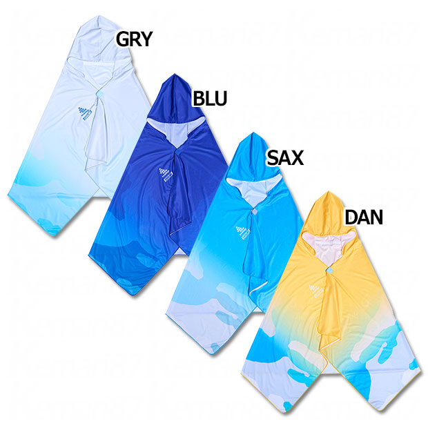 接触冷感素材を使用したクールポンチョ。涼しげなカラーリング・デザインを採用。夏場の練習や観戦、レジャーシーンに最適なアイテム。