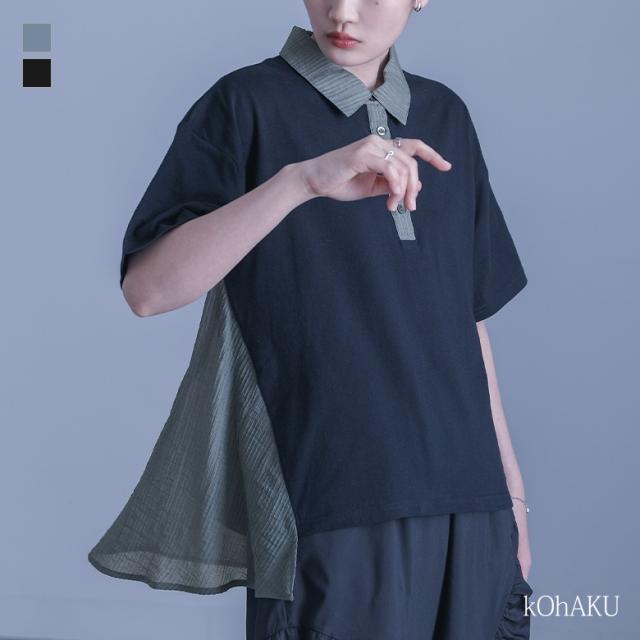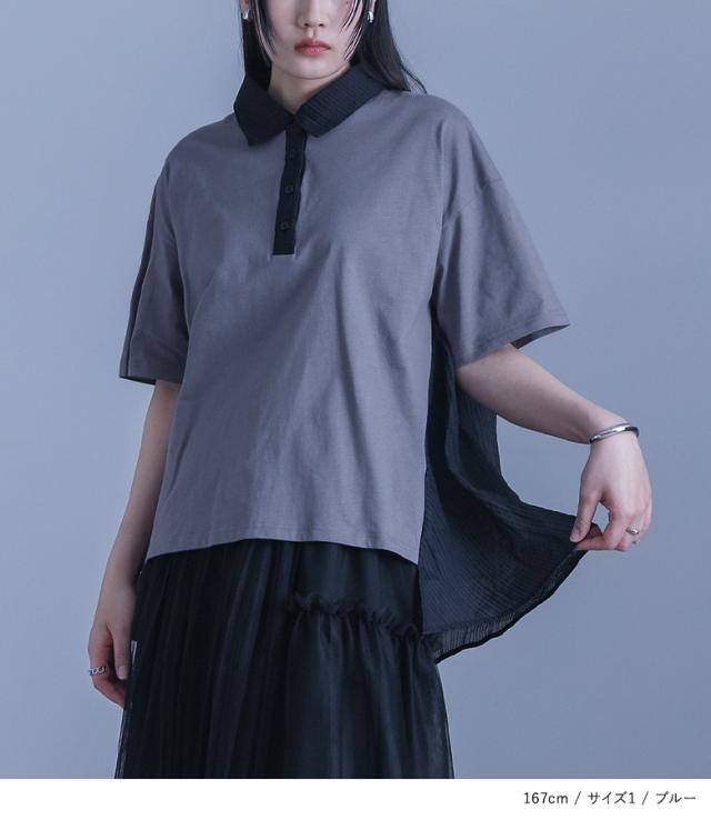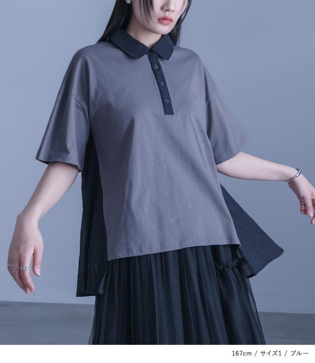 シャツ レディース トップス ポロシャツ カットソー 半袖 シアー ストライプ 異素材 ドッキング フレア 前後差 お尻が隠れる 夏 【TP】 ブラウス ボタンシャツ 襟付きシャツ 襟付き ミディ丈 ミドル丈 後ろ下がり 無地 異素材MIX シースルー 透け感 おうちで洗える カジュアル シンプル ナチュラル モード キレカジ オフィス・ビジネス ゆったり ゆる 楽ちん ストレスフリー 動きやすい Sサイズ Mサイズ Lサイズ LLサイズ 3Lサイズ XLサイズ 体型カバー 10代 20代 30代 40代 50代 60代 低身長 高身長 女子会 オフィス 通勤 通学 お買い物 お出掛け 旅行 リゾート レジャー アウトドア キャンプ おしゃれ お洒落 トレンド 流行 学校行事 ママ 母 母親 kOhAKU コハク 大人女子 大人可愛い お洒落可愛い 大人カジュアル ラフ スタイリッシュ 洗練 エッジィ 上品 きれいめ かっこいい osharewalker オシャレウォーカー おしゃれうぉーかー ブルー 青 ブラック 黒 レイヤード 重ね着 薄手 涼しい レギュラーカラー 清涼感[ID]12tn0rf