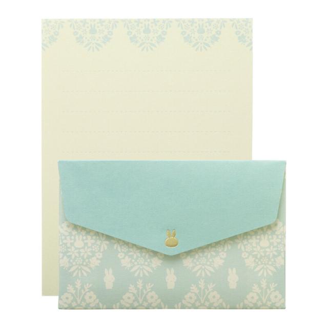 ●ディック・ブルーナのイラストを組み合わせて表現したダマスク柄と、封筒に施した箔押しエンボス加工のミッフィーがポイント。