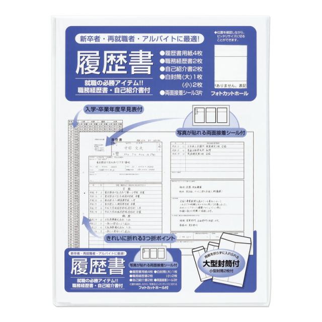 ●付属品: 用紙(B4二つ折り)4枚、職務経歴書(B5)2枚、自己紹介書(B5)2枚、長4封筒2枚、角4封筒1枚、写真貼付シール3片