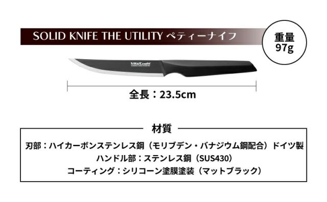 ビタクラフト SOLID KNIFE(ソリッドナイフ) THE UTILITY ペティーナイフ ブラック 【品番:VC-SK01U BK】