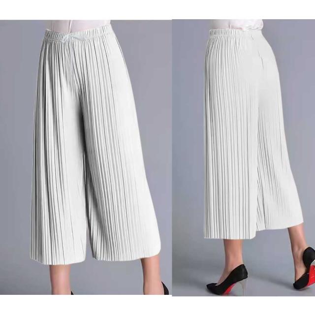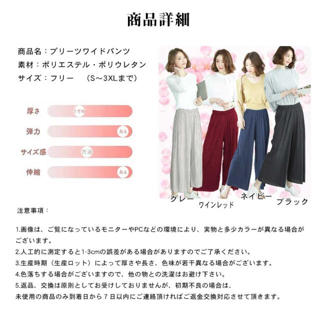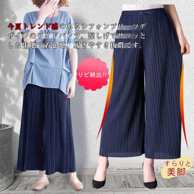 ●今夏トレンド感のあるシフォンプリーツデザインのワイドパンツ。涼しげでサラッとした生地で着心地、履きやすさ抜群です。