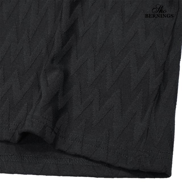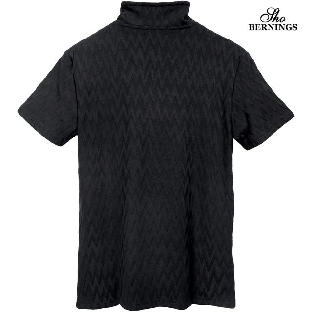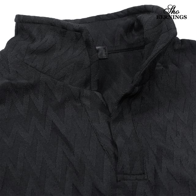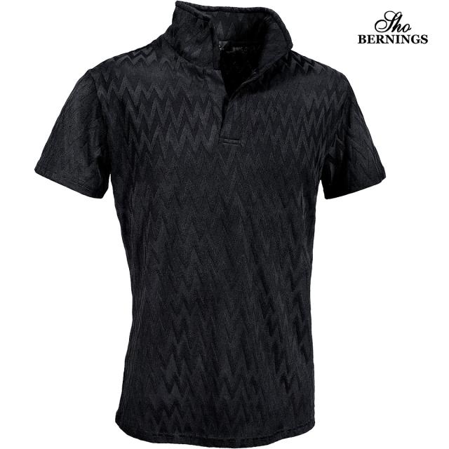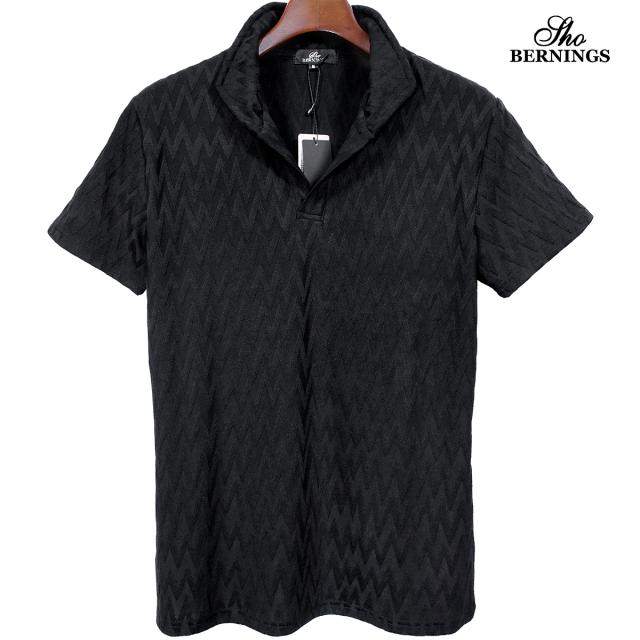 ポロシャツ 半袖 イタリアンカラー シェブロン柄 ジャガード メンズ スキッパー 襟ワイヤー ストレッチ(ブラック黒) 356562