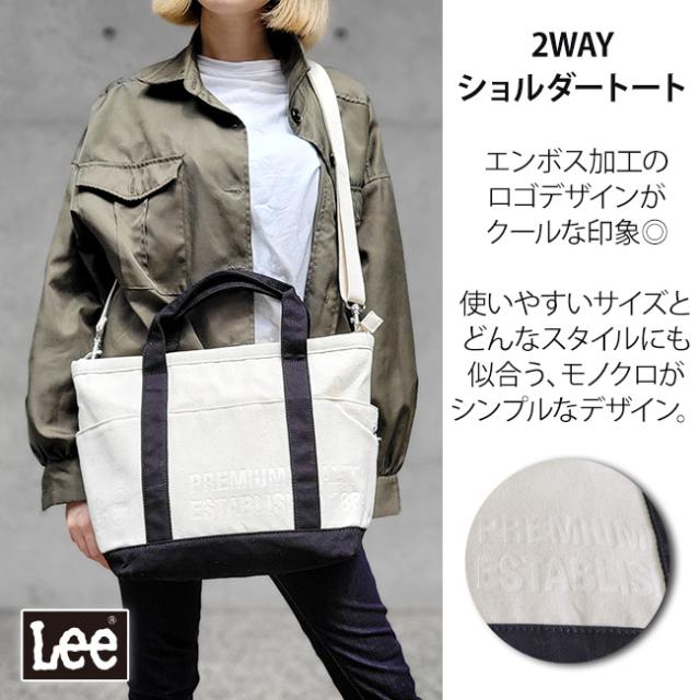Lee リー 2WAY エンボス トートバッグ ショルダーバッグ ショルダートート コットン エンボス ショルダートートバッグ 帆布 レディース キャンバス ブラック ホワイト