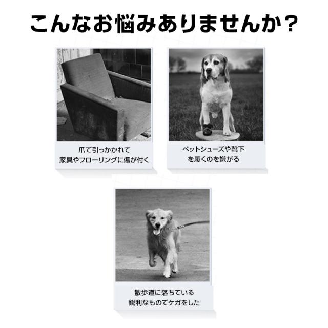 靴や靴下を嫌がる子、リハビリ中の子、歩行が不安定になってきたシニア犬もOK。