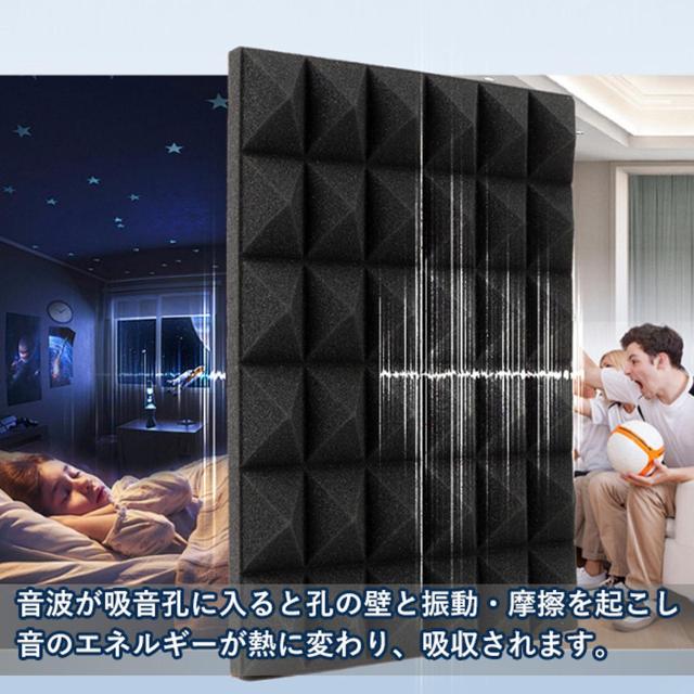 室内の音響環境を改善するための吸音材です。ピラミッド型のウレタンフォームが音の反射を抑え、快適な空間作りをサポートします。接着シート付きで設置も簡単です。