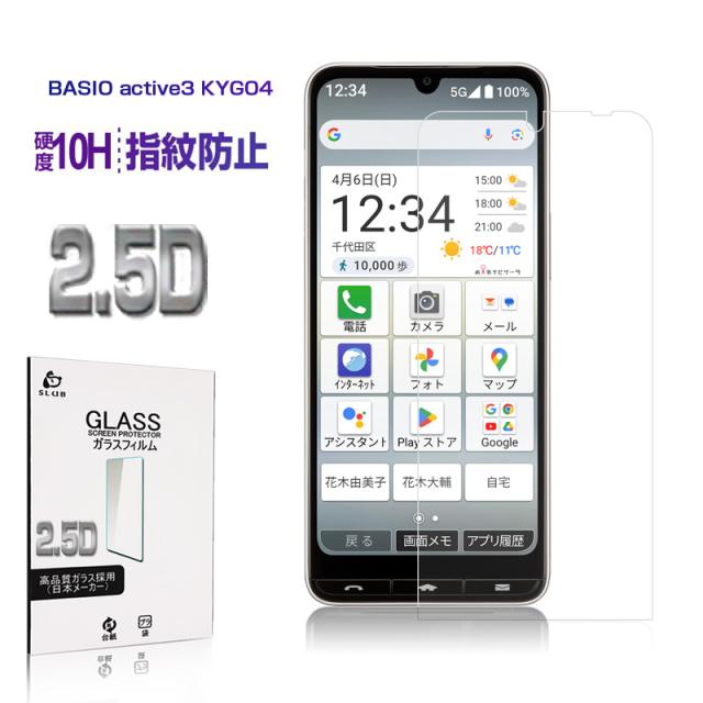BASIO active3 KYG04 強化ガラス スマホ画面保護 フィルム スクリーン保護フィルム クリア仕様 スマートフォン 液晶保護 耐衝撃 au スクラッチ防止 携帯電話 UQ mobile 薄型 2.5D 全面保護 Android 貼り付け簡単 0.3mm 硬度10H 日本製ガラス ベイシオアクティブ 3