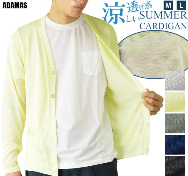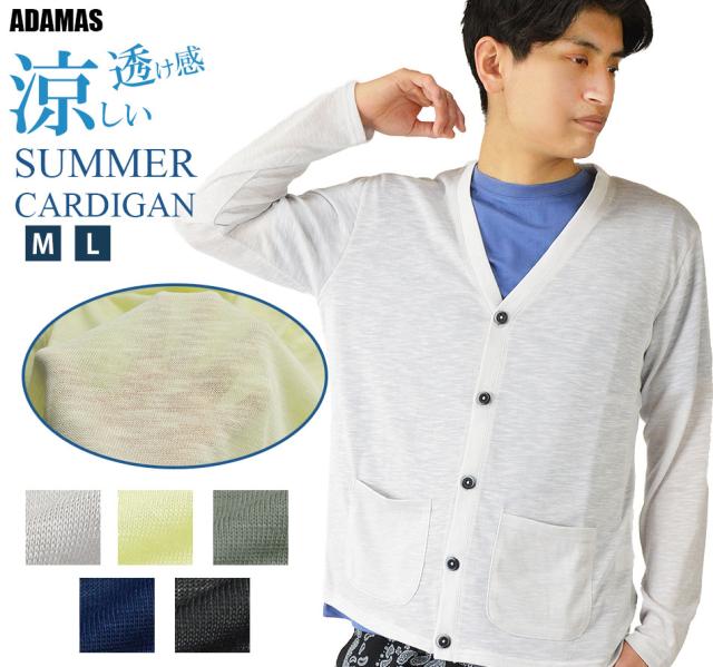 サマー カーディガン メンズ サマーニット 長袖 無地 Vネック カーデガン ニットソー 洗える 透け感 涼しい 薄手 夏用 羽織り 春 夏 秋 UV対策 冷房対策 海 リゾート 旅行 レジャー おしゃれ レーヨン 黒 紺 春夏 新作 送料無料