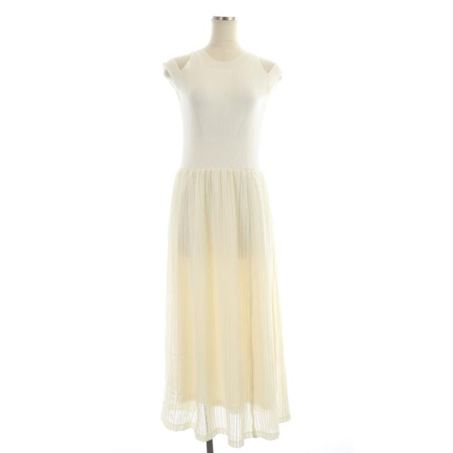 【中古】ラグナムーン 23AW ストライプメッシュコンビワンピース ロング マキシ丈 ノースリーブ ニット M 白