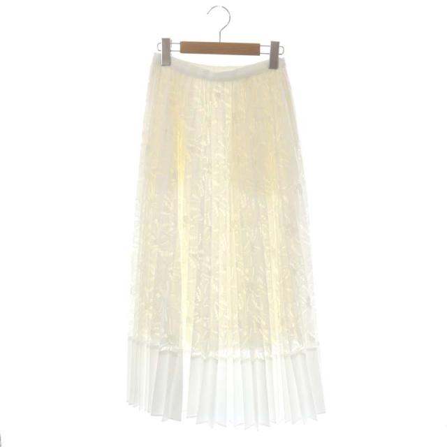 【中古】オブリ OBLI レースプリーツロングスカート フレア 異素材切替 S 白 ホワイト オフホワイト
