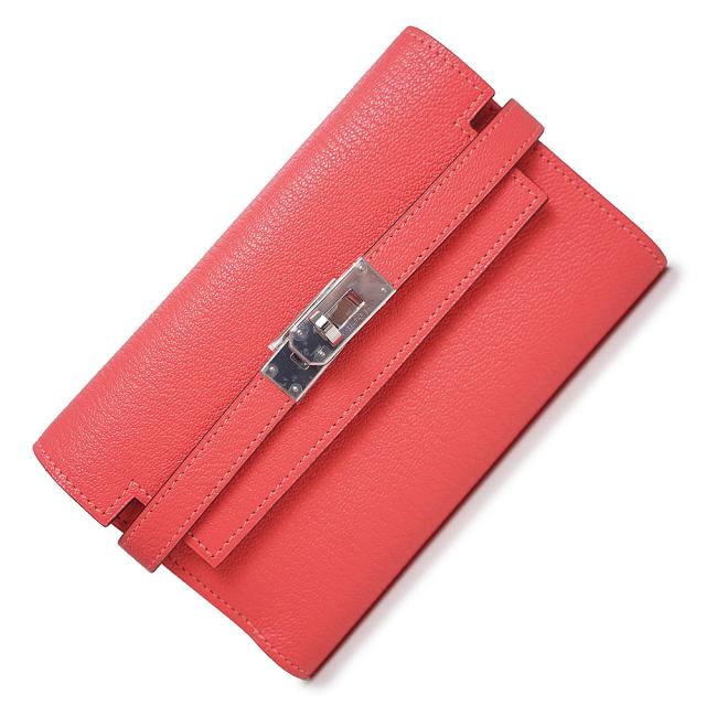 (未使用 展示品)エルメス HERMES ケリーウォレット デプリアン ミディアム 三つ折り財布 シェブル シェーブルミゾール レザー ローズリップスティック ピンク シルバー金具 C刻印 箱付