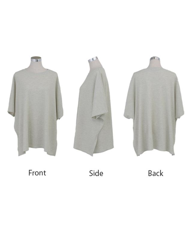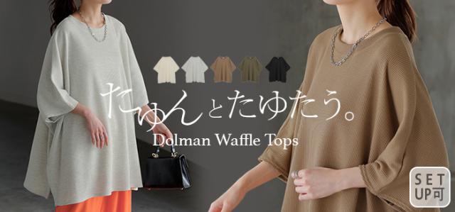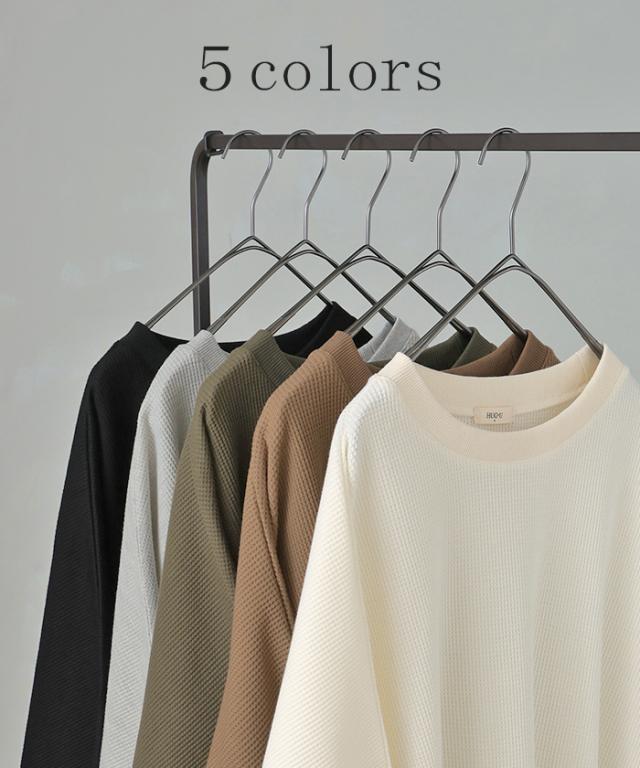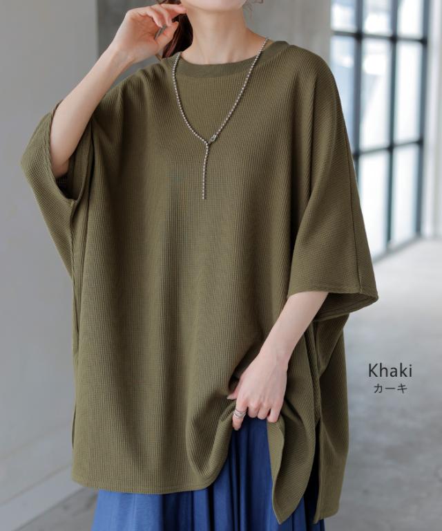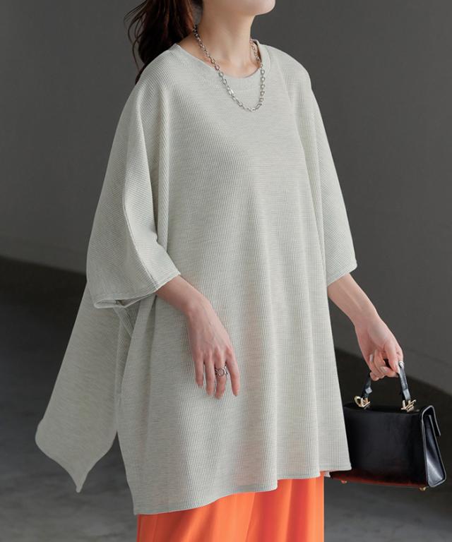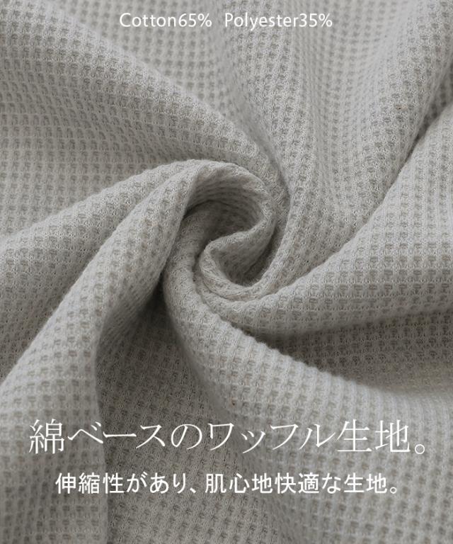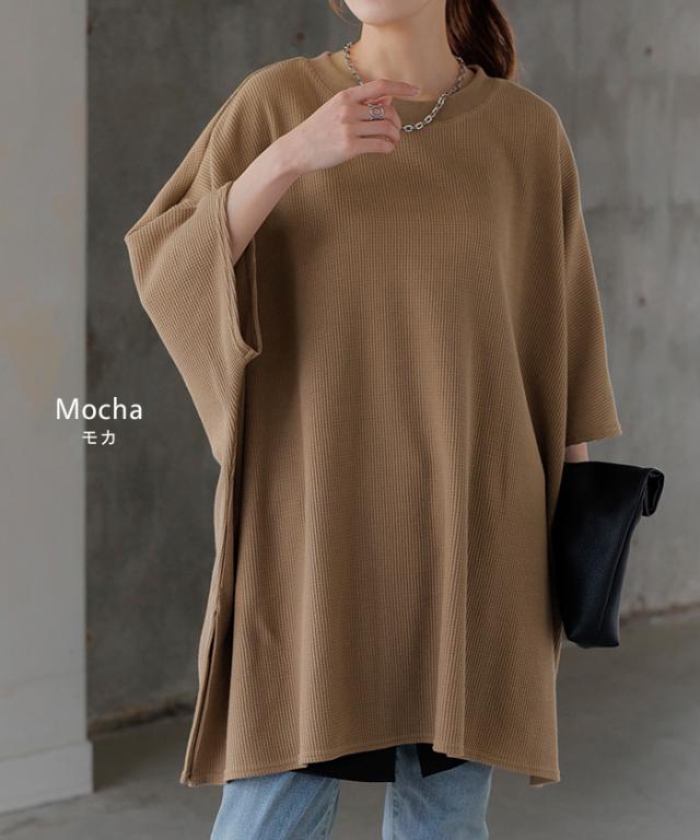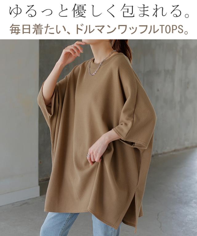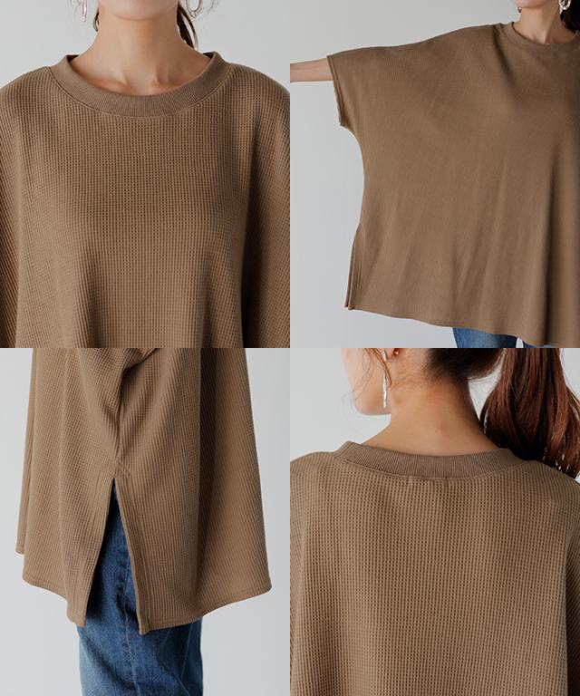 華奢見せ長め丈と着心地の良いワッフル素材が特徴的なプルオーバートップスです。
