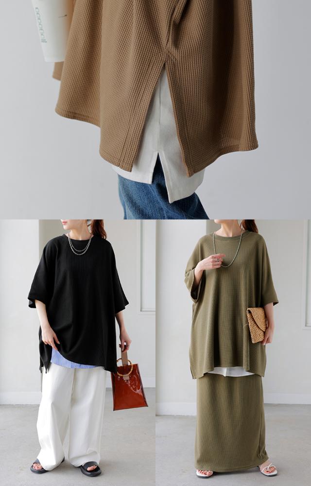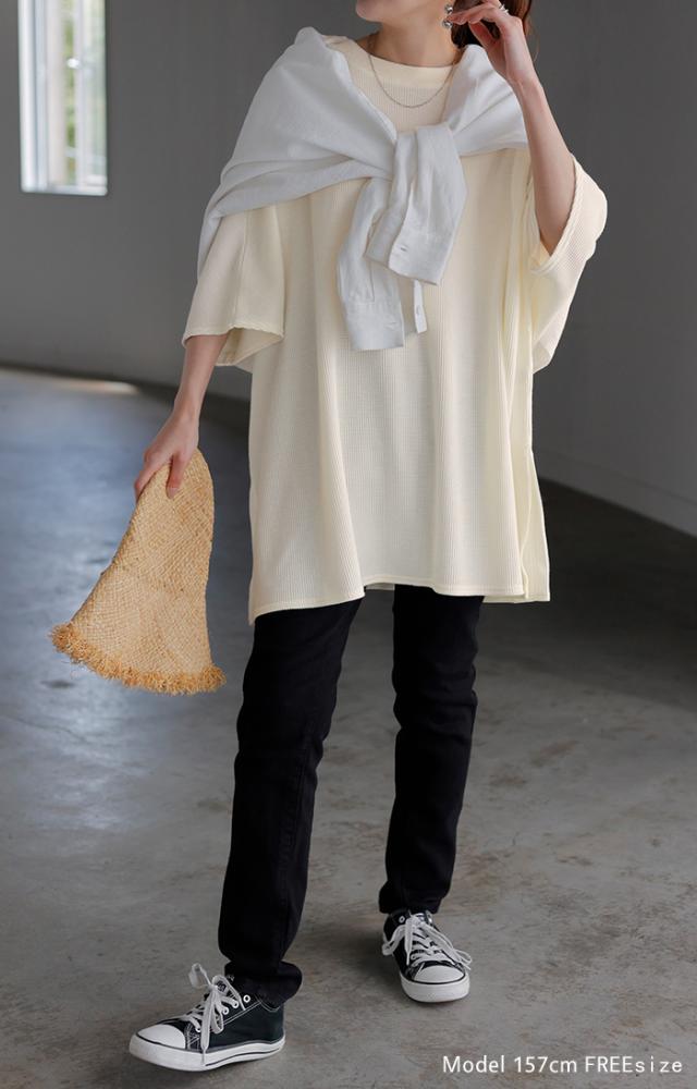 半袖T 半袖Tシャツ ティシャツ ティーシャツ ワッフル生地 ワッフルTシャツ ワッフルカットソー ワッフルプルオーバー 袖あり ロングTシャツ ロングティーシャツ ロングティシャツ ロングトップス ロングT ロングカットソー ティーシャツロング ビッグT ビッグTシャツ ビックT ビックTシャツ Uネック U字ネック 丸首 クルーネック 二の腕カバー 二の腕隠し デザイン デザインT デザインTシャツ デザインティーシャツ ゆるT ルーズ ルーズT ルーズTシャツ ルーズティー ルーズティーシャツ カットソー ロング 長い 長め チュニック チュニック丈 リブ ミディアム ミディアム丈 ミドル ミドル丈 ドルマントップス ドルマン ドルマン袖 ドルマンスリーブ ドルマンスリーヴ チュニックTシャツ チュニックティーシャツ チュニック丈 チュニック丈Tシャツ チュニック丈T ロング丈 ロング丈Tシャツ ロング丈T ロング丈ティーシャツ ロング丈カットソー レイヤードT レイヤードTシャツ レイヤードトップス ベーシックインナー ストレッチ 伸縮性 伸縮 白T 無地T すっきり スッキリ ドロップショルダー ストリート コクーン コクーンシルエット コクーンT コクーンTシャツ コクーンカットソー リラックス 太もも 太ももカバー 軽い 軽め 軽量 薄手 薄目 薄め 薄い 前後差 スリット スリット入り ラクチン らくちん 楽ちん 楽 動きやすい ゆったり ゆる ゆったりサイズ ゆるカジ ゆるい ゆるファッション 綿 コットン 綿混 フリーサイズ フリー S M L LL 2L XL 3L XXL LLL ブラック 黒 黒色 ホワイト 白 白色 オフホワイト アイボリー 生成り グレー 灰色 ライトグレー ブラウン モカ 茶 茶色 カーキ 緑 緑色 レイヤード 重ね着 重ね レイヤードコーデ 体型カバー 二の腕カバー 二の腕隠し 別売り セットアップ 可 着痩せ 着回し お尻が隠れる 大きい 大きめ 大き目 プラスサイズ 大きいサイズ ビッグ ビック big ビックシルエット ビッグシルエット ビックサイズ ビッグサイズ オーバーサイズ オーバー カジュアル ナチュラル 大人カジュアル レディースファッション ベーシック オフィス オフィスカジュアル テレワーク リモートワーク リモート オンライン飲み会 韓国ファッション 韓国風 韓国 ストリート おうち時間 お家時間 デート お出かけ フェス リゾート ビーチ 海 旅行 飛行機 パーティー パーティ 着回し 母の日 プレゼント ギフト 贈り物 クリスマス シンプル 大人 オトナ 大人カジュアル オフィスカジュアル オフィス レディースファッション 女性 綺麗 綺麗目 きれい キレイ キレイめ キレイメ きれいめ 高見え 上質 上品 ゆる ゆったり 旬 トレンド 20代 30代 40代 50代 60代 おしゃれ お洒落 オシャレ 可愛い かわいい カワイイ カッコいい 格好良い カッコイイ 春 夏 秋 冬 春夏 秋冬 HUG.U HUGU ハグユー はぐゆー