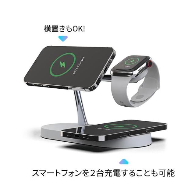 ワイヤレス充電器 iPhone 3in1 MagSafe マグネット式 15W 同時充電 Qi 充電器 置くだけ 3段調光 LED 照明 USB iPhone13 iPhone12 se apple watch airpods pro