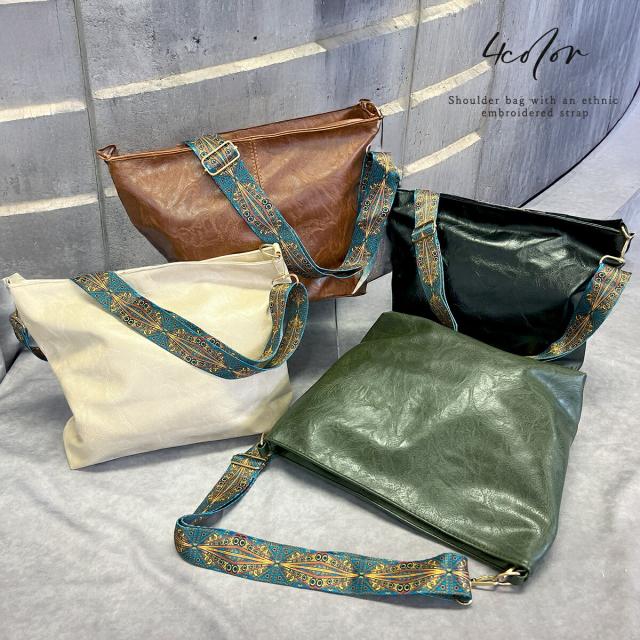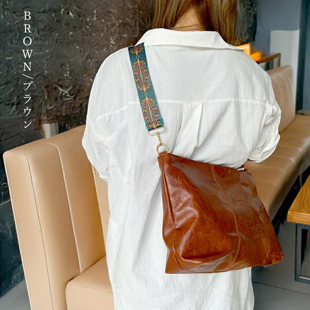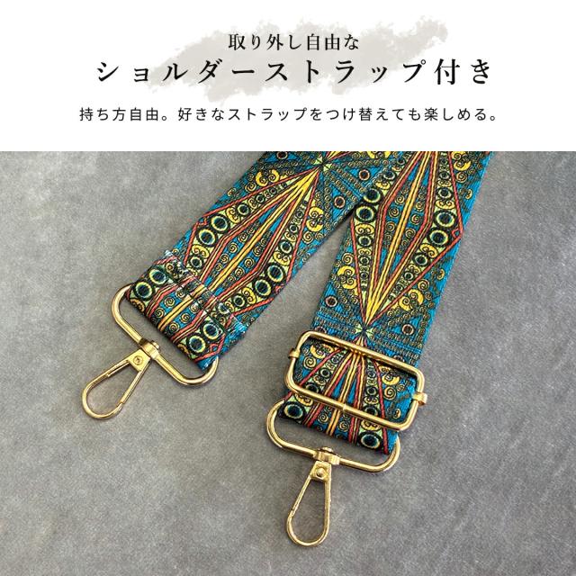 ショルダーストラップは太めの紐幅広幾何学模様がコーデのスパイス