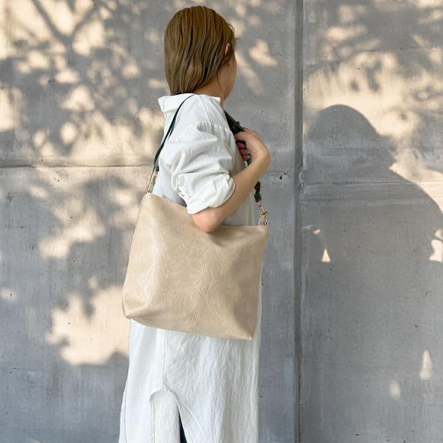 本革のようなシワとツヤ感やわらかい手触りとしなやかさが、大人っぽい+高見えデザインのフェイクレザー(合皮)鞄
