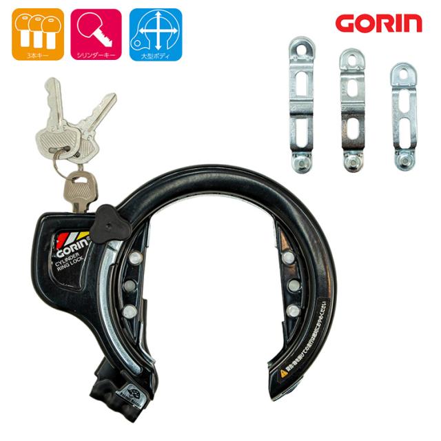 シリンダー式ヘルメットロックリング錠 GR750HL-KV ブラック 自転車の鍵 リングロック 後輪錠 シリンダーキー 自転車用 株式会社ゴリン