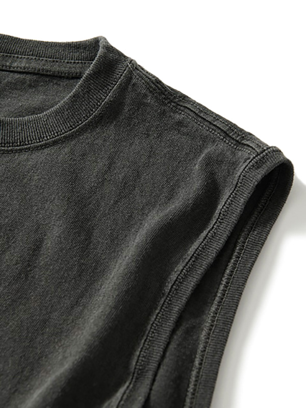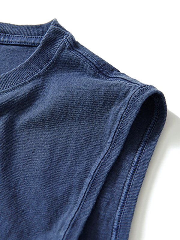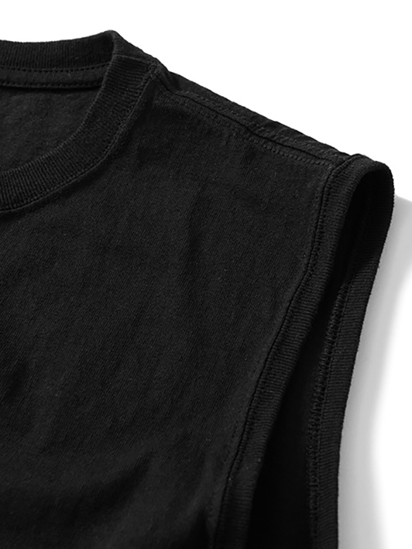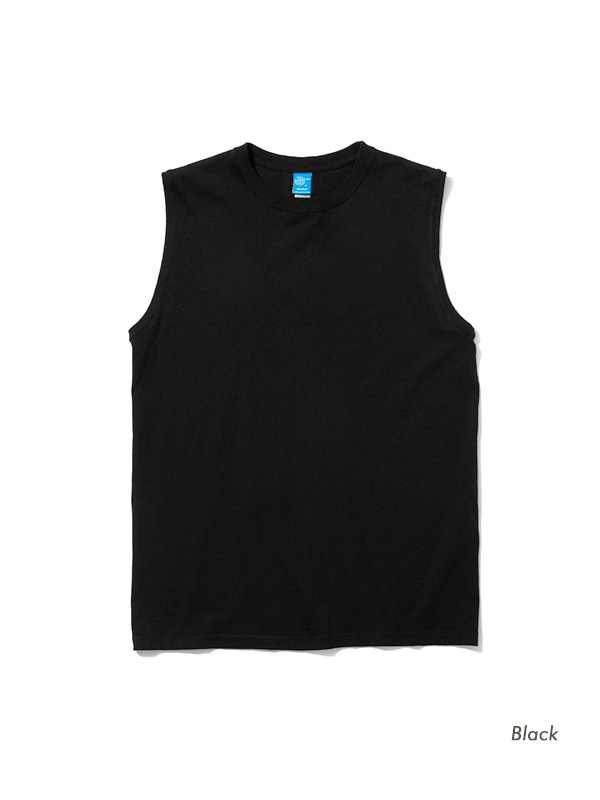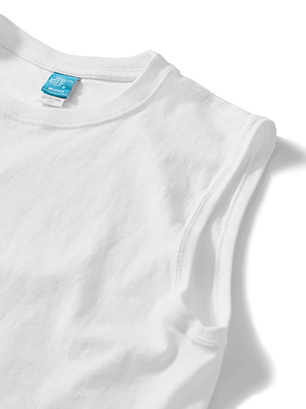 定番Tシャツシリーズと同じ5.5oz Jerseyの丸胴編みボディーを使用した、メンズ仕様のノースリーブTシャツ。