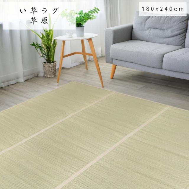 い草ラグ 草原 180x240ccm 3畳用 シンプル無地柄 裏面不織布 コンパクト収納 持ち運び楽々