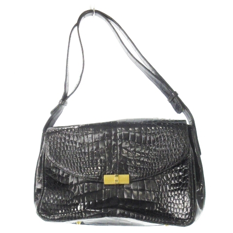 【中古】ジャルダンデサック JARDIN DESSACS ハンドバッグ ワンハンドル シャイニーレザー パイソン 黒