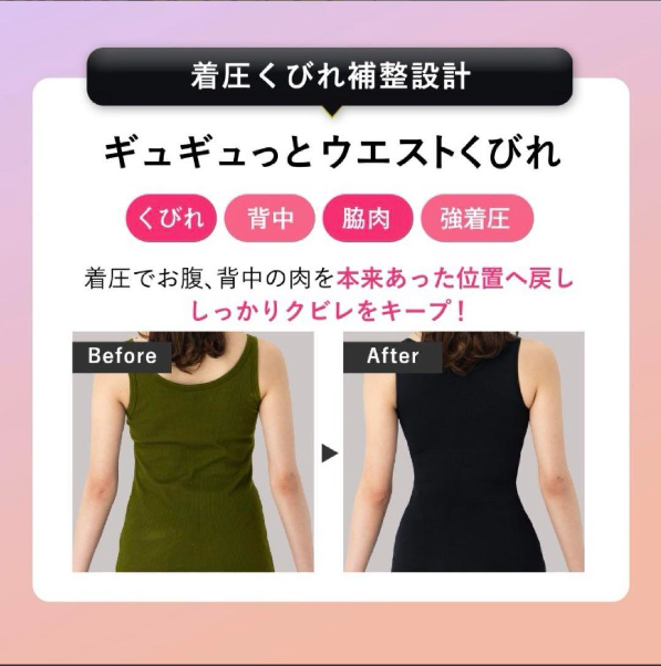 強力な加圧により、着た瞬間にお腹をギュギュッと締め付けます。