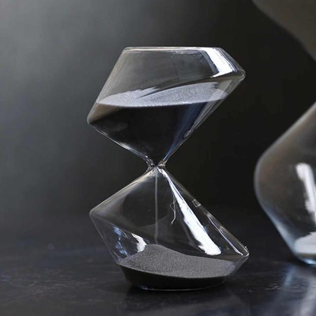 従来のドロップ型の砂時計とは一線を画す、彫刻的なデザインが特徴です。オブジェとして飾るだけでも様になります。