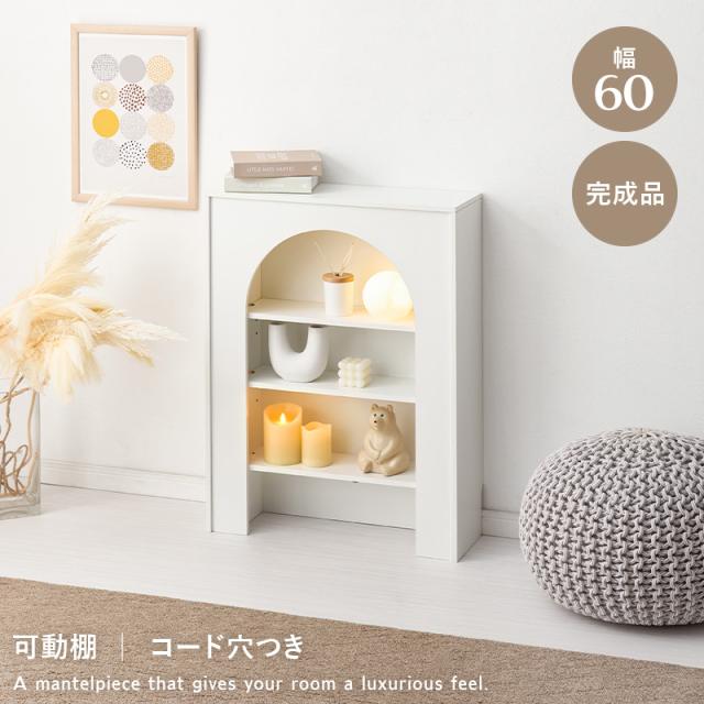 マントルピース 収納棚 幅60cm 可動棚 コード通し穴付き 完成品 ライト 照明 ディスプレイラック
