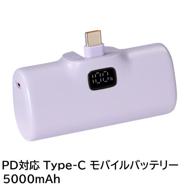 PD対応 Type-Cコネクタ モバイルバッテリー 5000mAh パープル ポケットチャージャー iPhone iPad充電 PSE取得 日本メーカー製 アクセス AMB-C5000PR メール便送料無料
