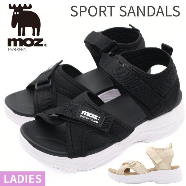モズ サンダル レディース 靴 スポーツサンダル 黒 ブラック ベージュ 軽量 軽い 厚底 クッション スポサン ベルト おしゃれ かわいい コーデ ボリュームソール 婦人靴 北欧 アウトドア 夏 海 moz 3007 ギフト