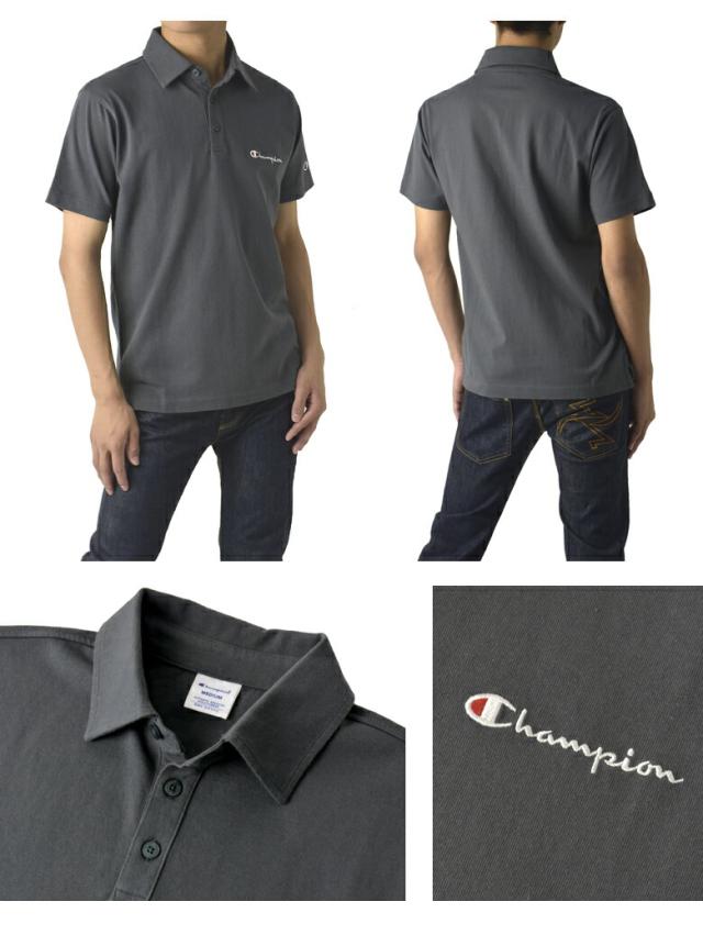 ポロシャツ ポロ 半袖 ワンポイント メンズ Champion チャンピオン ベーシック 綿 天竺 洗い加工 トップス 正規品 C3-X361【R1D】【パケ1】