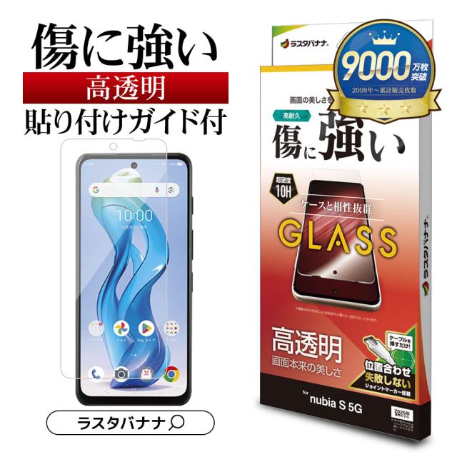 nubia S 5G ガラスフィルム 平面保護 高光沢 高透明 クリア 貼り付けガイド 0.33mm 硬度10H ヌビア エス A403ZT 保護フィルム GP4845NUS ラスタバナナ