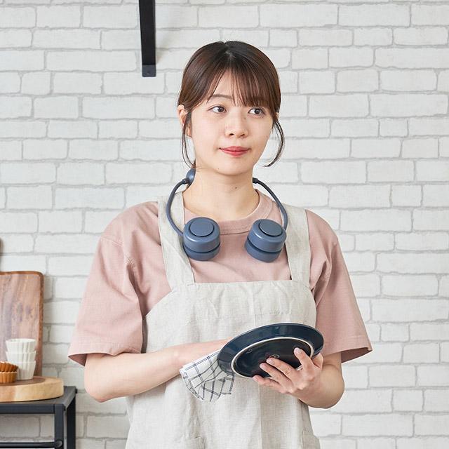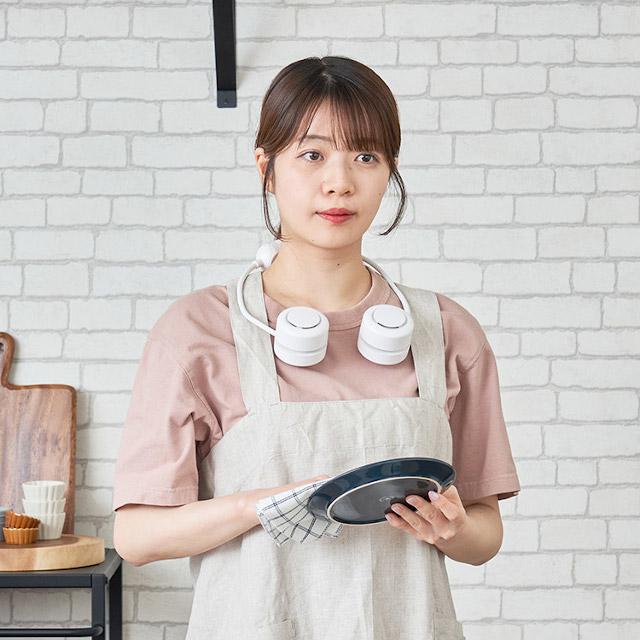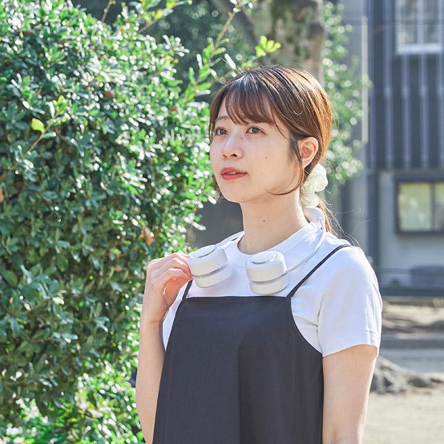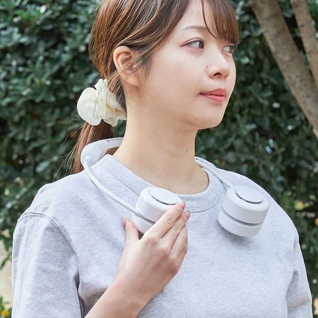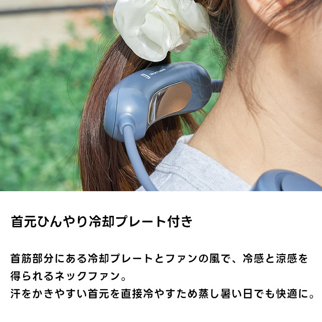 ファンの風と冷却プレートで首元をWでひんやり快適に! |