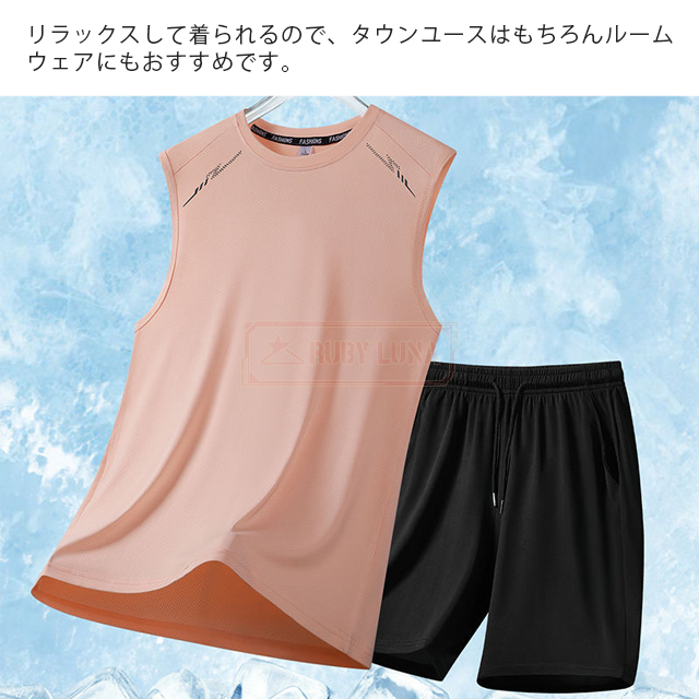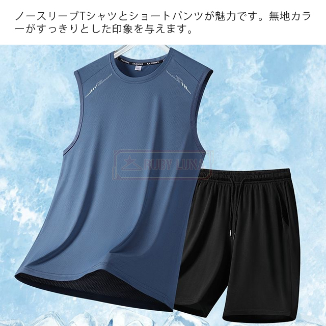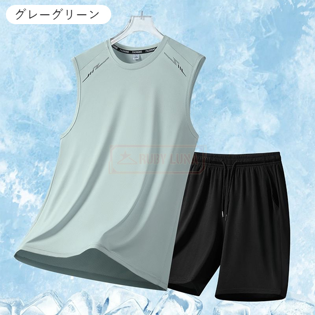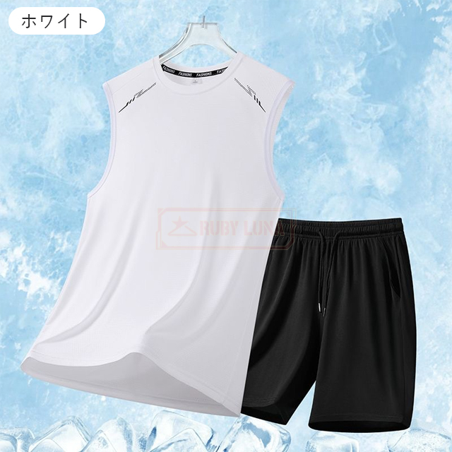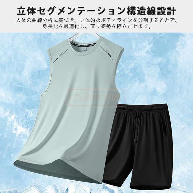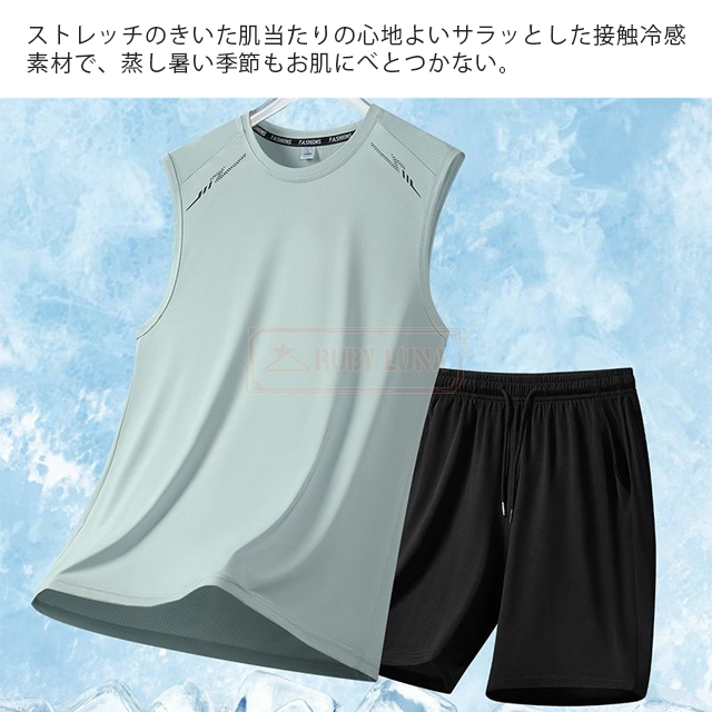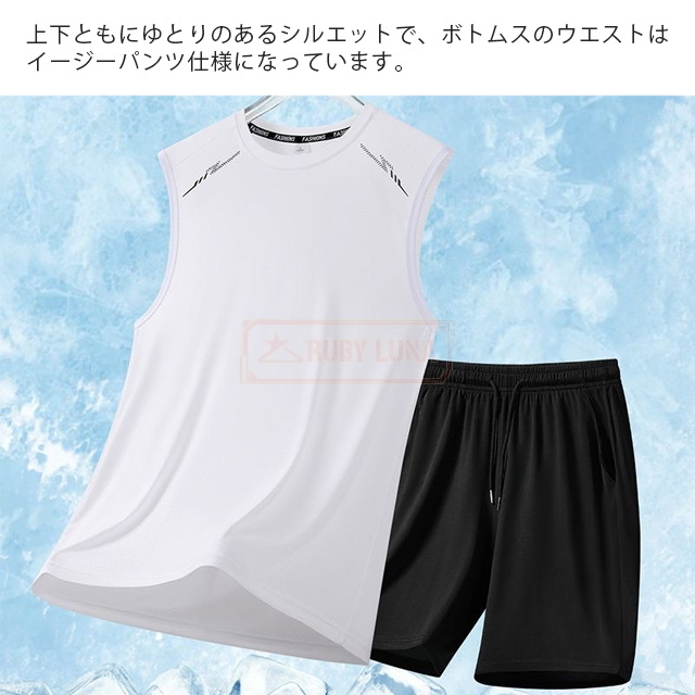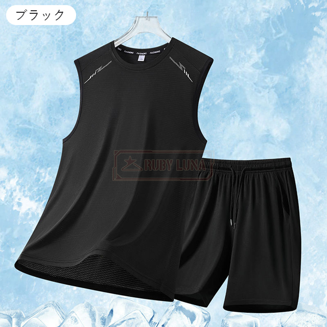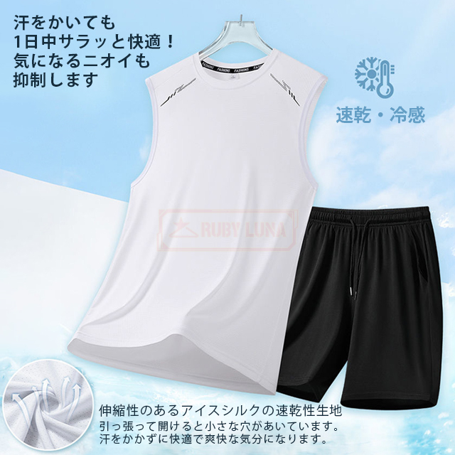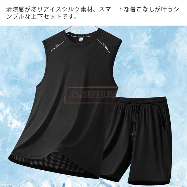 最安挑戦 春新作 送料無料 新作 セットアップ メンズ ノースリーブ セットアップ 夏 涼しい 薄手 冷感 アイスシルク 接触冷感 ジャージ 無地 速乾 上下セット カジュアル スポーツ 運動着 部屋着 スポーツウェア ビッグシルエット