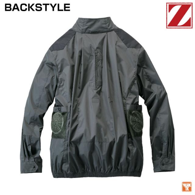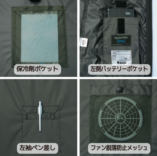 遮熱・撥水・UVカット機能を備えた、フルハーネス対応のサイドファン仕様ウェア。