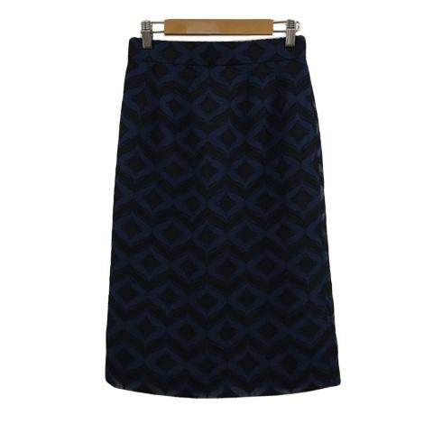 【中古】ユナイテッドアローズ closet story スカート タイト ひざ丈 総柄 ウエストゴム 紺 ネイビー レディース