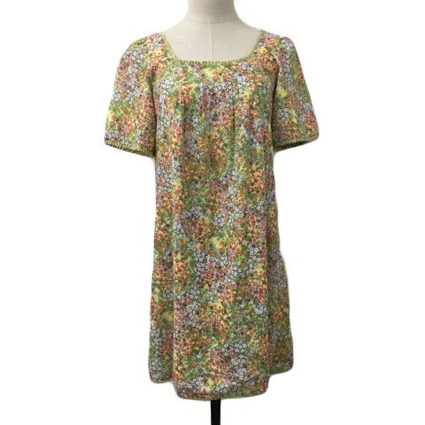 【中古】シンシアローリー ワンピース Aライン ミニ レース マルチカラー 花柄 半袖 2 緑 赤 グリーン レッド