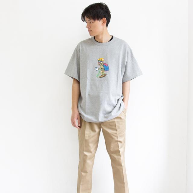 ・遊び心溢れる、アウトドアマンプリントのTシャツ