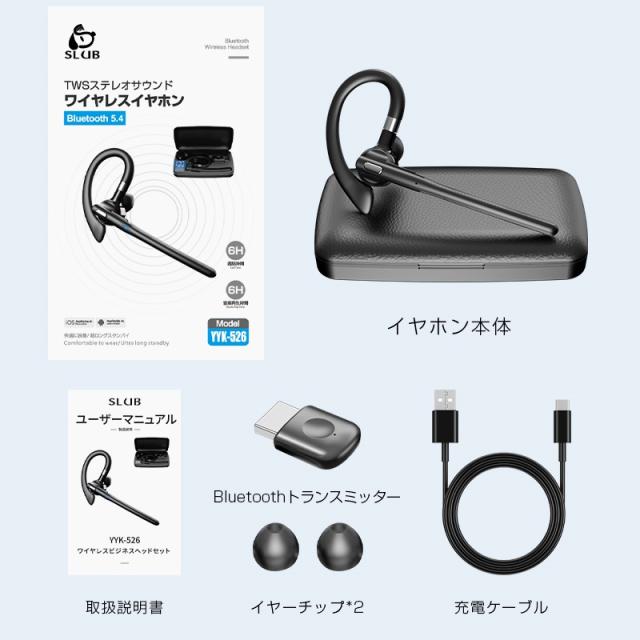 ワイヤレスイヤホン Bluetooth 5.4 【2026年最新型】 耳掛け式 角度調節可能 落ちにくい 片耳タイプ 左右耳兼用 ながら聴き マイク内蔵 ENC ノイズリダクション クリア通話 Bluetoothアダプター付 自動ペアリング 小型軽量 防水防滴 多機種対応【PL保険加入済み製品・安心】