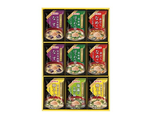 マルトモ 鰹節屋のこだわり椀 9食 なすの味噌汁 ほうれん草の味噌汁 なめこの味噌汁 卵スープ 海藻のお吸い物 MSー15F 税率8%