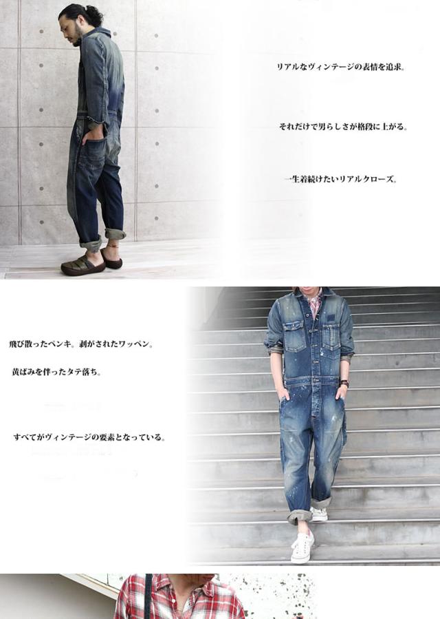 ジョンブルからエンジニアオーバーオールが登場。エンジニア(技術者)が着ているツナギをイメージソースに、ジョンブルらしい加工の要素を取り入れ確かな"男らしさ"を感じさせてくれる一着。 部分的に付着したホワイトの塗料、そして黄ばみを伴ったアタリ感等が労働着としての面影を色濃く残している。 サスペンダーを内蔵することで全体的に下がりにくくなっており、また安定した着心地を提供してくれる点にジョンブルの気配り、そしてセンスの高さを感じさせられる。 トップ部分を脱いだ時にサスペンダーをアクセントとしたアレンジ力を生かした着こなしも楽しめるのも注目ポイントになっている! |