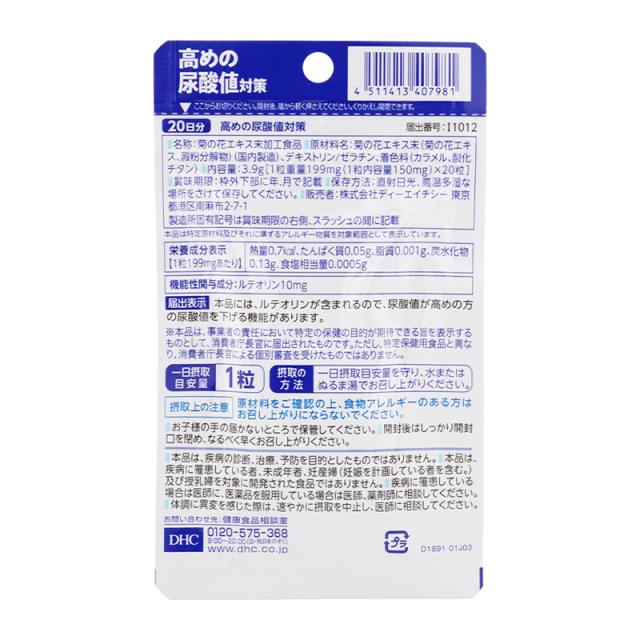 [5個セット]DHC ディーエイチシー 高めの尿酸値対策 20日分 20粒 機能性表示食品 サプリメント 健康食品 ルテオリン 菊の花エキス末[ギフトラッピング対応]