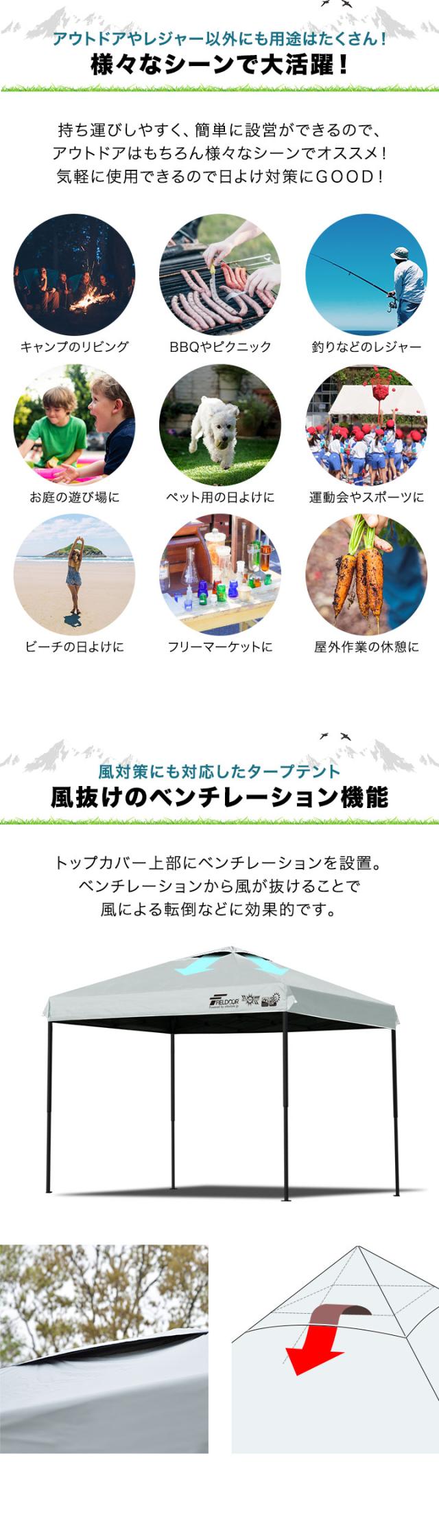 タープ タープテント ワンタッチタープ(簡易式) ワンタッチタープテント ワンタッチテント 簡易タープ 簡単タープ 組立て式 折りたたみ 折り畳み 拡張 頑丈 高耐久 日よけ 日除け 紫外線 UVカット 紫外線対策 遮光 耐水 三人用 四人用 五人用 六人用 3人用 4人用 5人用 6人用 3名用 4名用 5名用 6名用 3人 4人 5人 6人 天幕 タープテント セット タープ 大型 ベンチレーション 風に強い アウトドア アウトドア用品 ファミリーキャンプ キャンプ キャンプ用品 キャンプ道具 Fieldoor フィールドア おしゃれ かんたん 初心者 ビギナー 道具 プライバシー 着替え 休憩 防災 災害時 避難 防災用品 アウトドアグッズ フィールドギア アクセサリー レジャー 山 海 ビーチ 海水浴 フリマ フリーマーケット 公園 フェス 屋外イベント バーベキュー BBQ 運動会 クラブ活動 部活動 お花見 キャンピング グランピング 防災 非常用