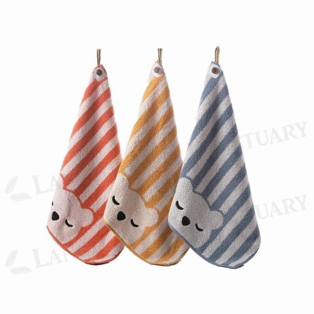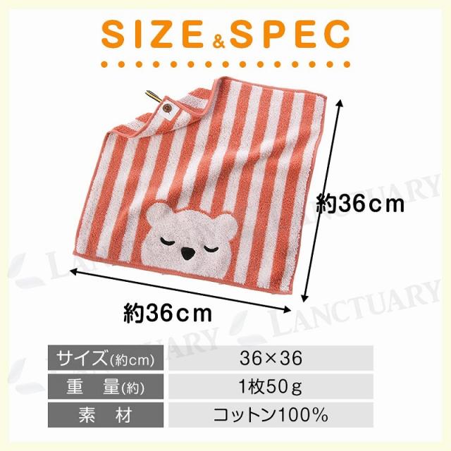 | 主な仕様 | 商品名:ループタオル 3枚セット 種類:オレンジ・イエロー・ブルー サイズ(約cm):36×36 重さ(約):50g 特徴: ループの取っ手の紐がボタン式で取り外し可能。 お子さんの入園準備に紐を外して普段使いに。 くま柄でかわいい。色も3色あり兄弟、姉妹でも使えるカラー展開。柄もストライプでお洒落。 |