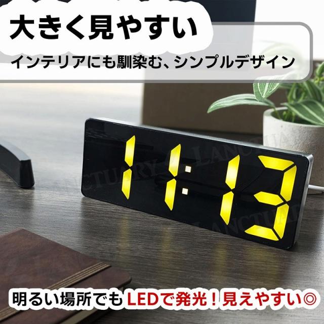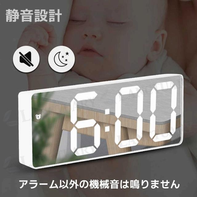 デジタル 目覚まし時計 LED めざまし時計 おしゃれ 光 置き時計 携帯 USB 卓上時計 スヌーズ 静音 インテリア時計 ミラー 鏡面 電池式 単4電池 スヌーズ